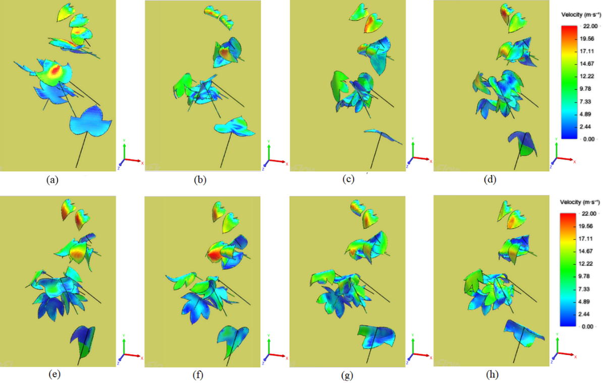 b 不同时刻下相同冠层结构内部叶片的变形